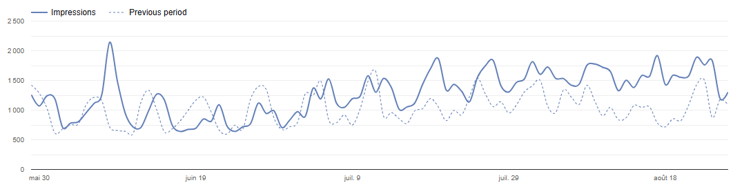 - Pics d’impressions moyen en augmentation à +2400 impressions/jour